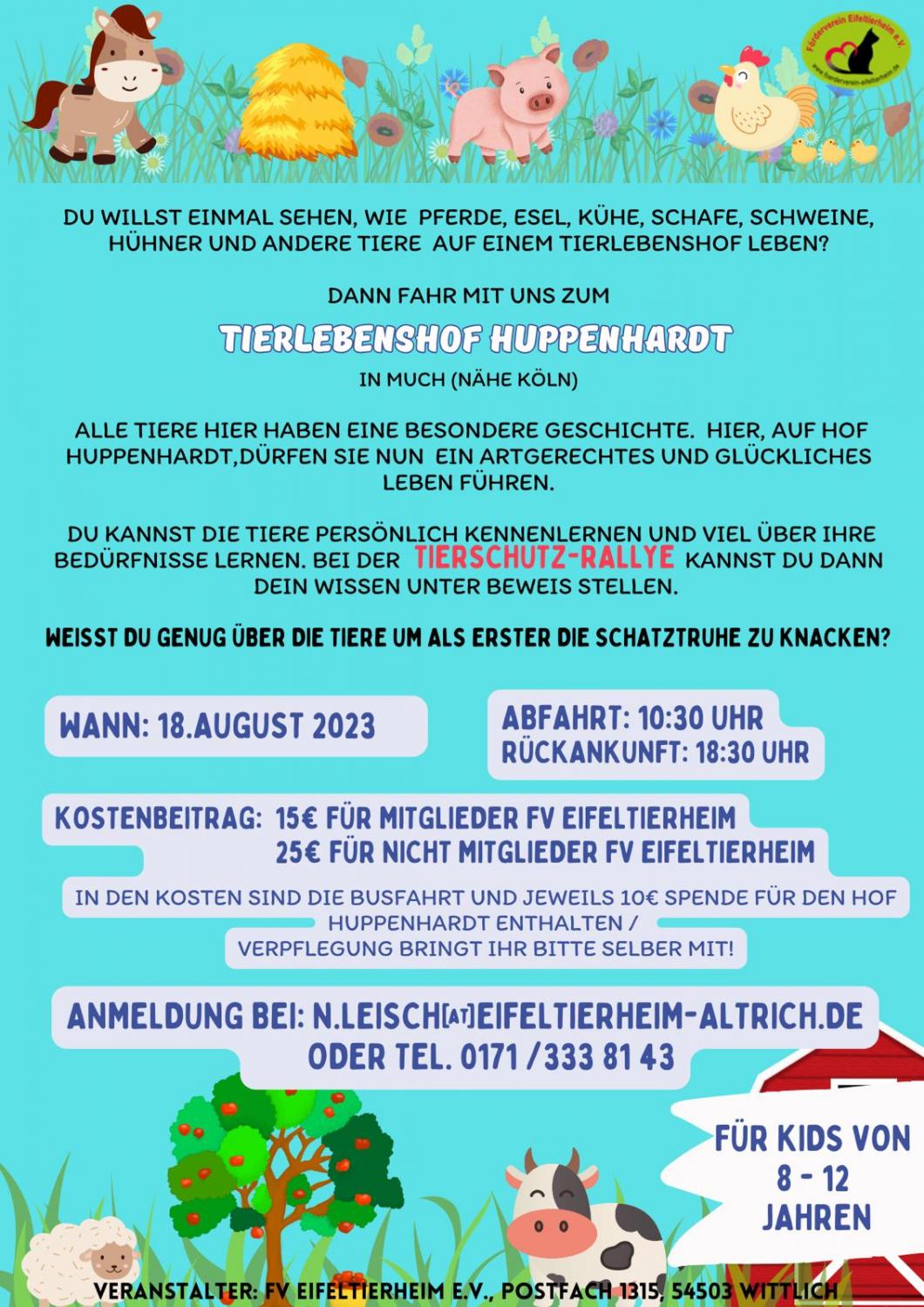 Darin sind die Busfahrt und 10 € Spende für den Hof Huppenhardt enthalten.